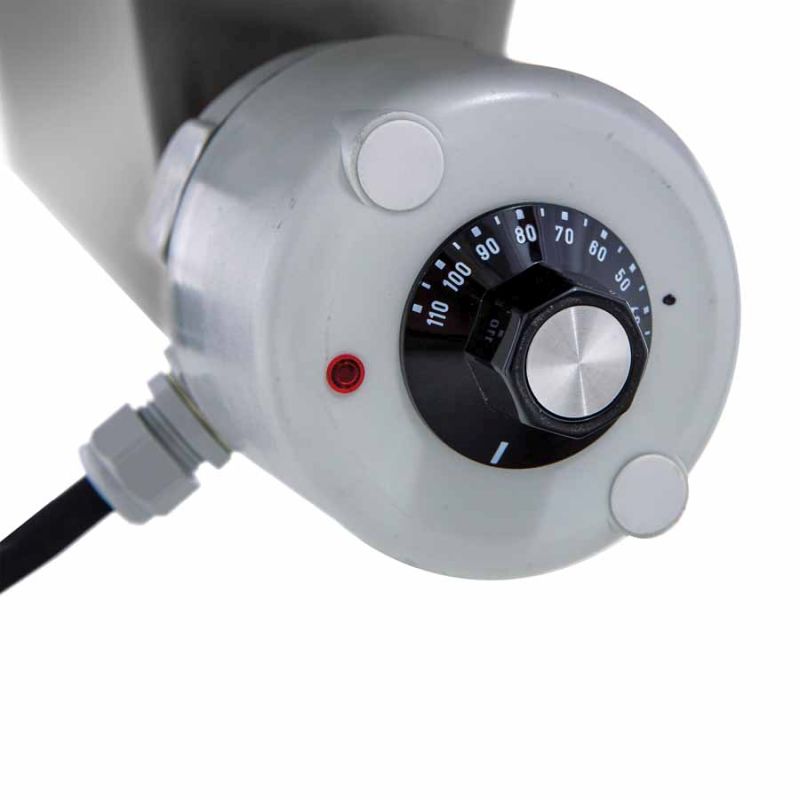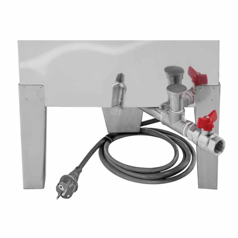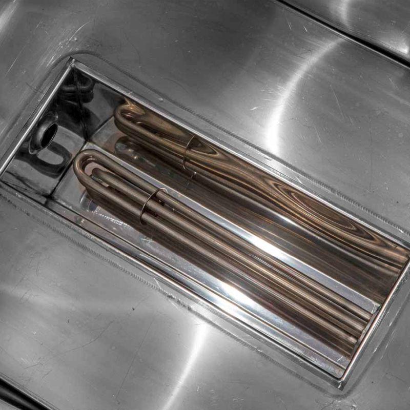 - Élément chauffant tubulaire immergé 3 kW/230 V avec régulateur de température 30–110 °C et protection contre le fonctionnement à sec.