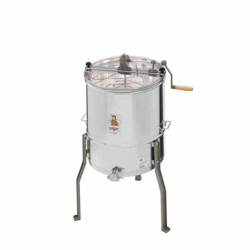 L'extracteur à miel Logar 4 cadres à entraînement manuel offre une conception robuste et des fonctionnalités réfléchies pour l'apiculteur exigeant. L'entraînement manuel est logé dans un boîtier métallique stable avec roue libre et frein anti-retour pour une utilisation sûre et contrôlée. L'extracteur est de type tangentiel et permet d'extraire le miel efficacement sans endommager les cadres.