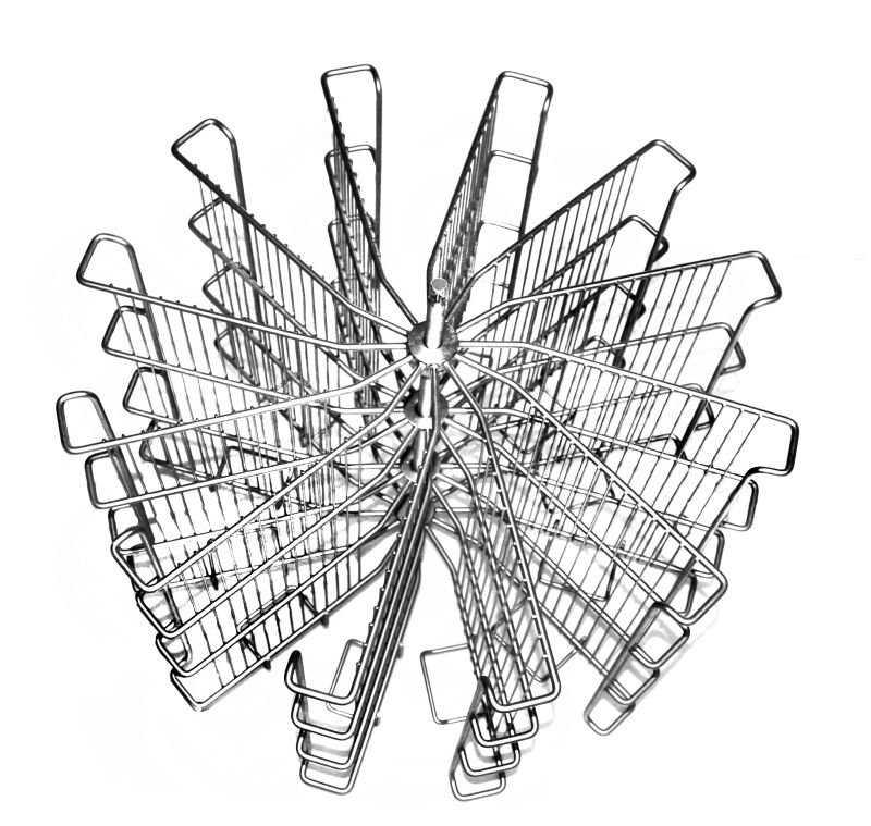Lors de l'extraction, il n'est pas nécessaire de retourner les cadres dans l'extracteur, car la force centrifuge et l'inclinaison naturelle des alvéoles assurent la vidange simultanée et bilatérale des cadres. Le panier est conçu de sorte que le cadre s'appuie sur la grille d'accrochage pendant la rotation, ce qui empêche l'endommagement du cadre.