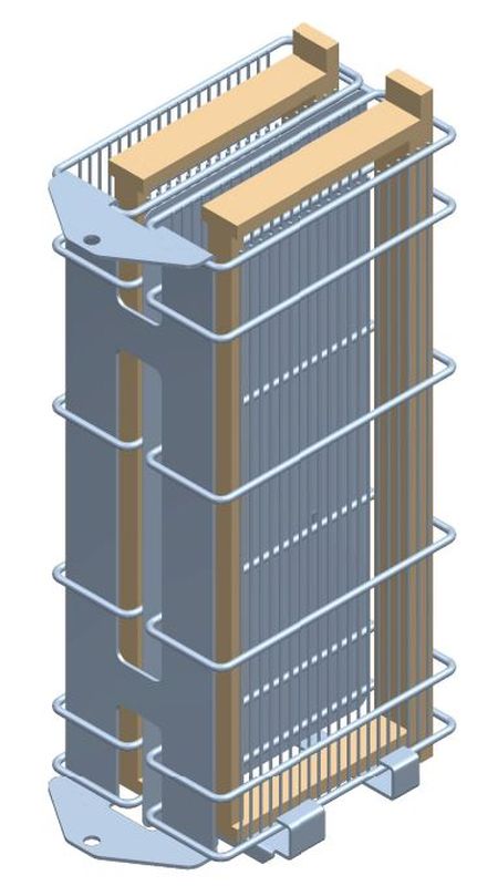 Les cages à cadres sont constituées de barres grillagées verticales d’une maille adaptée, de sorte que les cadres ne sont pas endommagés pendant l’extraction. Les cages sont reliées entre elles par un mécanisme spécial. Grâce à cette conception, le miel ne s’accumule pas dans les cages et les cadres restent secs après l’extraction.